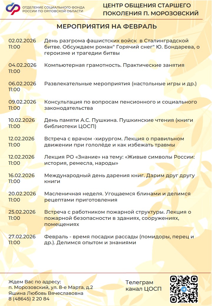 Центр общения старшего поколения в Свердловском районе был открыт 31 июля 2025 года на базе клиентской службы Отделения Социального фонда России по Орловской области.