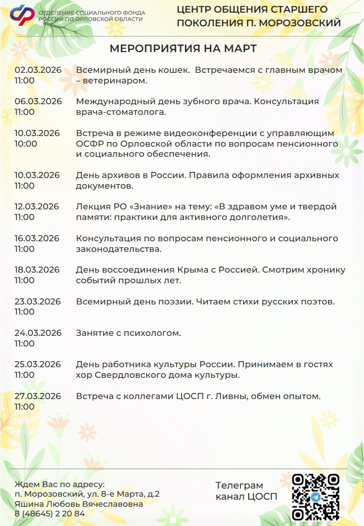Дайджест мероприятий Центров общения старшего поколения в Орловской области в феврале