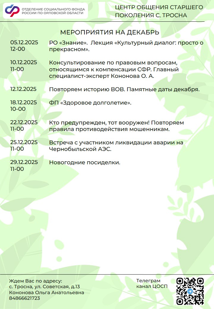 Центр общения старшего поколения в Троснянском районе был открыт 24 июля 2025 года на базе клиентской службы Отделения Социального фонда России по Орловской области.