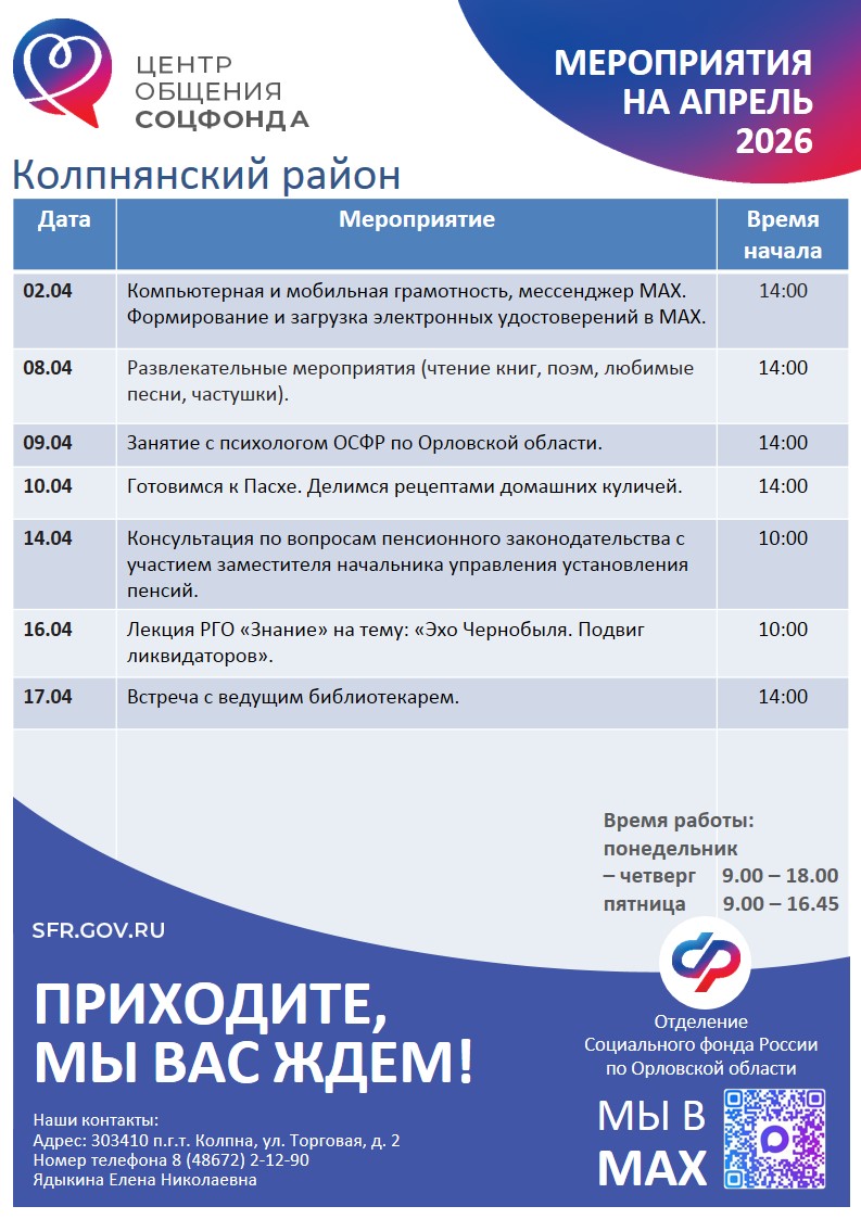 Центр общения старшего поколения в Колпнянском районе был открыт 4 июня 2025 года на базе клиентской службы Отделения Социального фонда России по Орловской области.