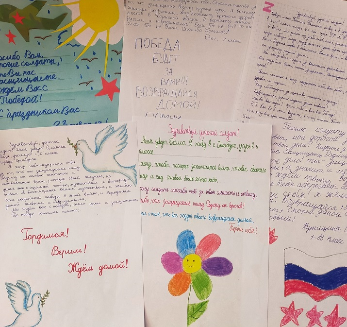 В рамках акции «Письмо солдату» вместе с гуманитарной помощью бойцам, находящимся в зоне СВО, были переданы рисунки и письма детей сотрудников Отделения. Девочка Даша, ученица 5 класса, обращаясь к солдату, пишет: «Я хочу сказать спасибо за твою смелость и отвагу, солдат. Спасибо, что защищаешь нашу Родину! Помни, что все ждут твоего возвращения домой. Береги себя!».