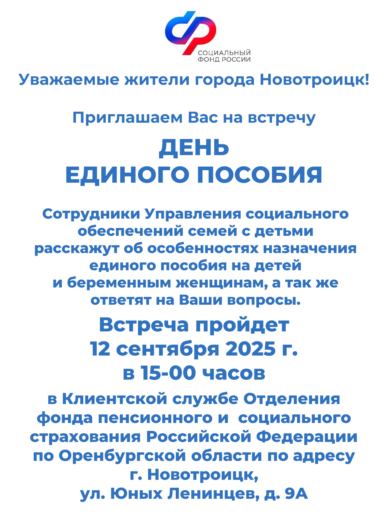 Отделение СФР по Оренбургской области приглашает граждан на "День единого пособия"