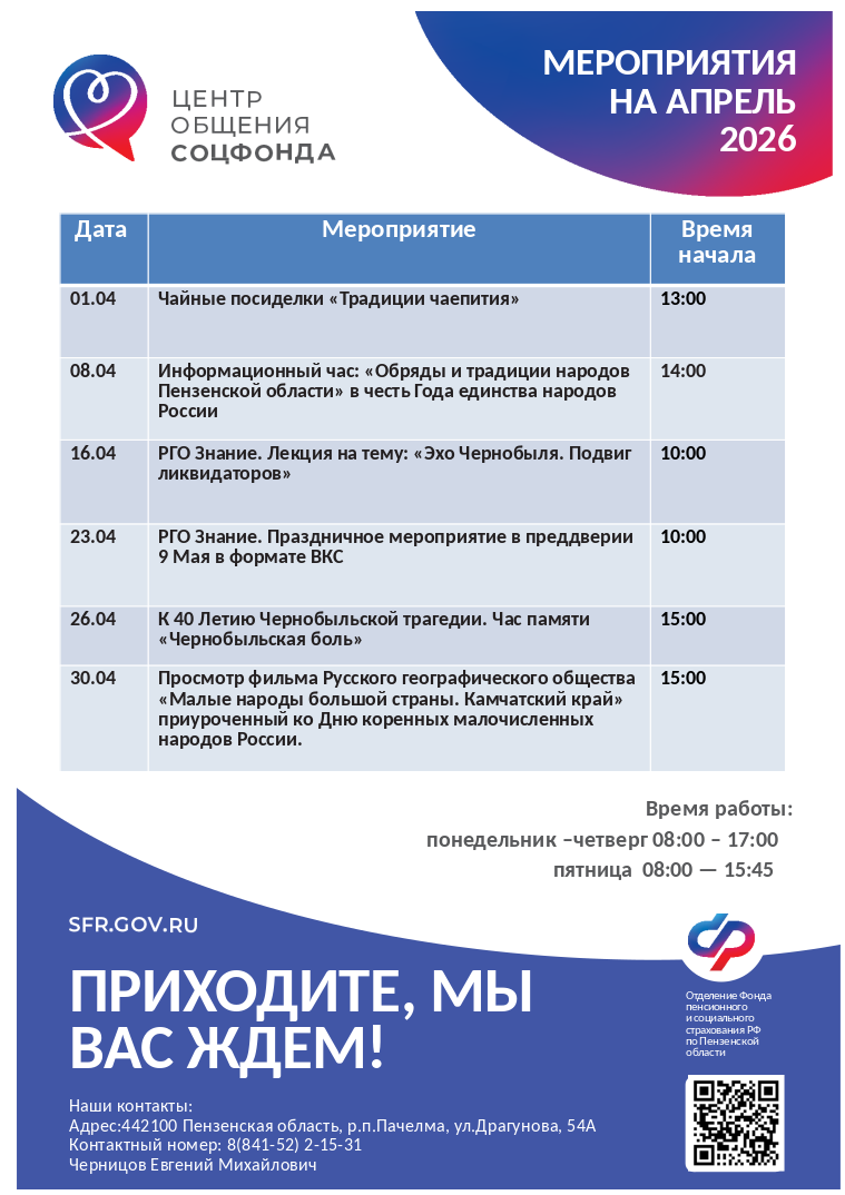 Центр общения старшего поколения в Пачелмском районе был открыт 28 сентября 2023 года на базе клиентской службы Отделения Социального фонда России по Пензенской области.