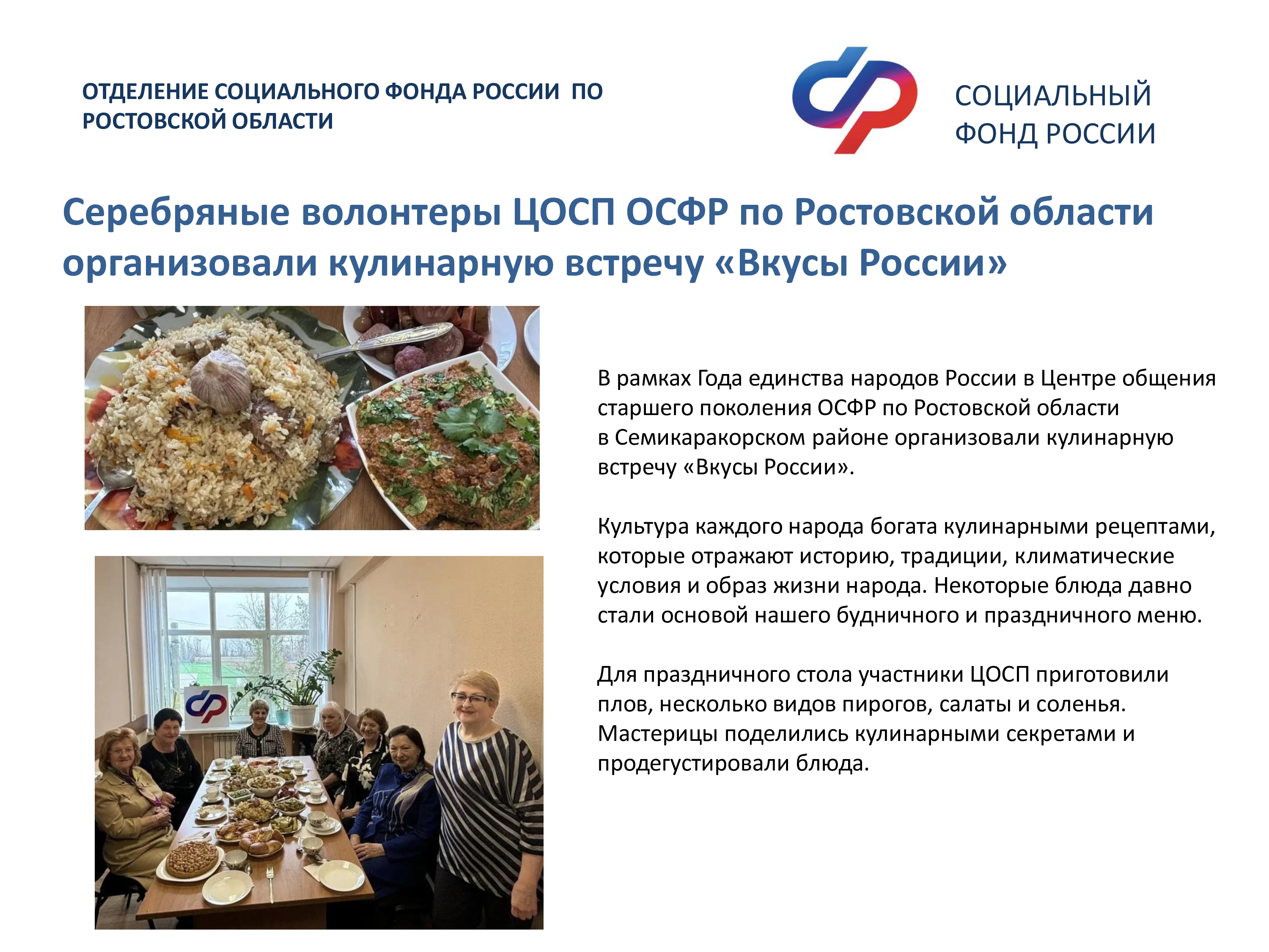 Серебряные волонтеры ЦОСП ОСФР по Ростовской области организовали кулинарную встречу "Вкусы России"