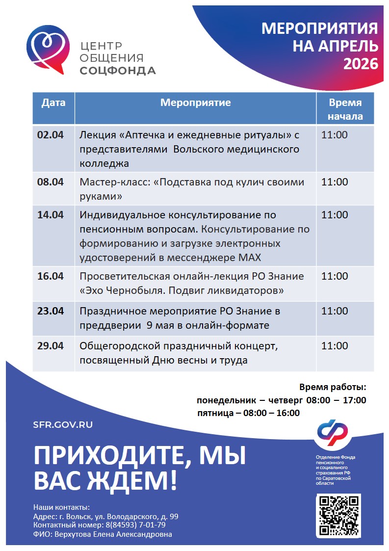 План работы Центра общения старшего поколения на апрель 2026 г.