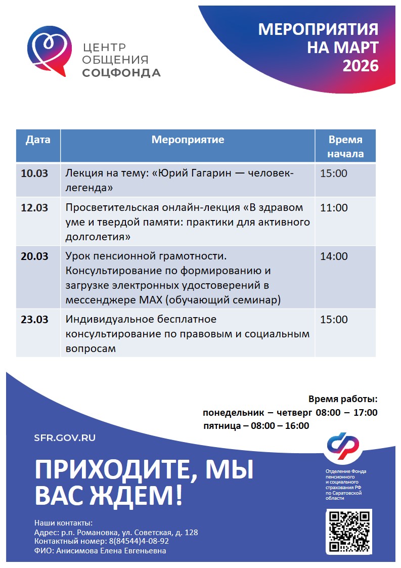 План работы Центра общения старшего поколения на март 2026 г.
