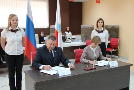 Торжественное подписание дополнительного соглашения между Отделением ПФР по Саратовской области и Многофункциональным центром