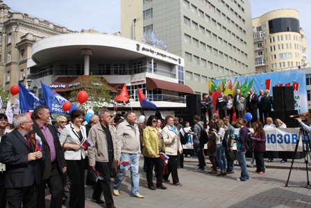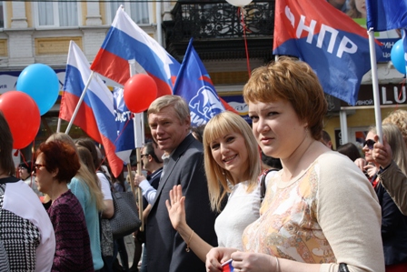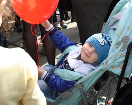 Хорошая солнечная погода, веселая дружная компания родных, детей, друзей и коллег участников демонстрации, приятная музыка, многочисленные шары и флаги создали особую атмосферу праздника.