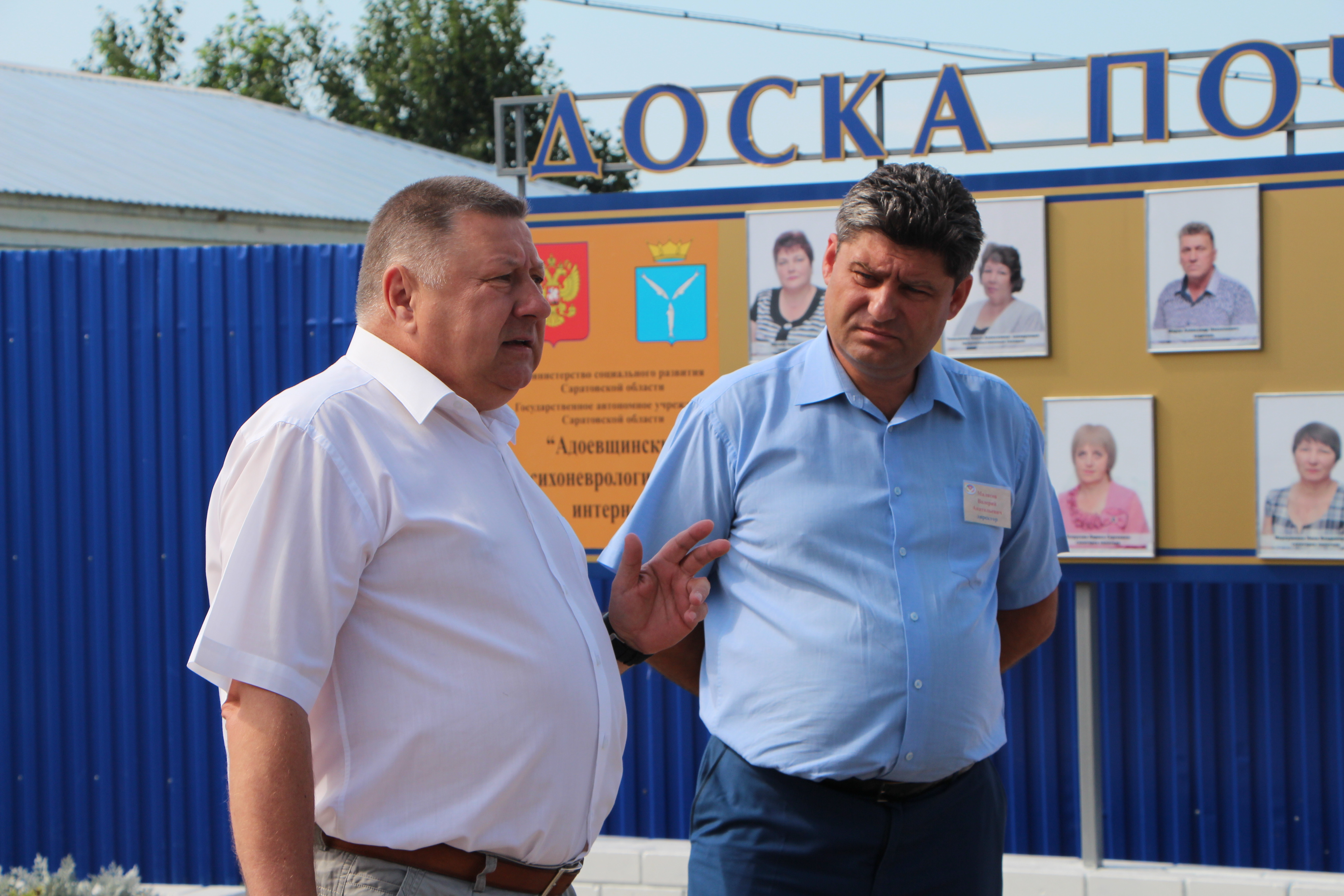 Поездка началась с посещения Адоевщинского психоневрологического интерната. Это учреждение основано в 1933 году, когда в одном из сел голодающего Поволжья Адоевщине открылся детский дом для детей-инвалидов. Несколько раз учреждение меняло свой профиль в зависимости от социальных потребностей населения. Сейчас в нем размещается 183 человека от 18 лет и старше, 21 из них находится на постельном режиме содержания. Пациентам оказываются медицинские услуги, социально-экономическая помощь, организовано питание, культурно-бытовое обслуживание и досуговые мероприятия.