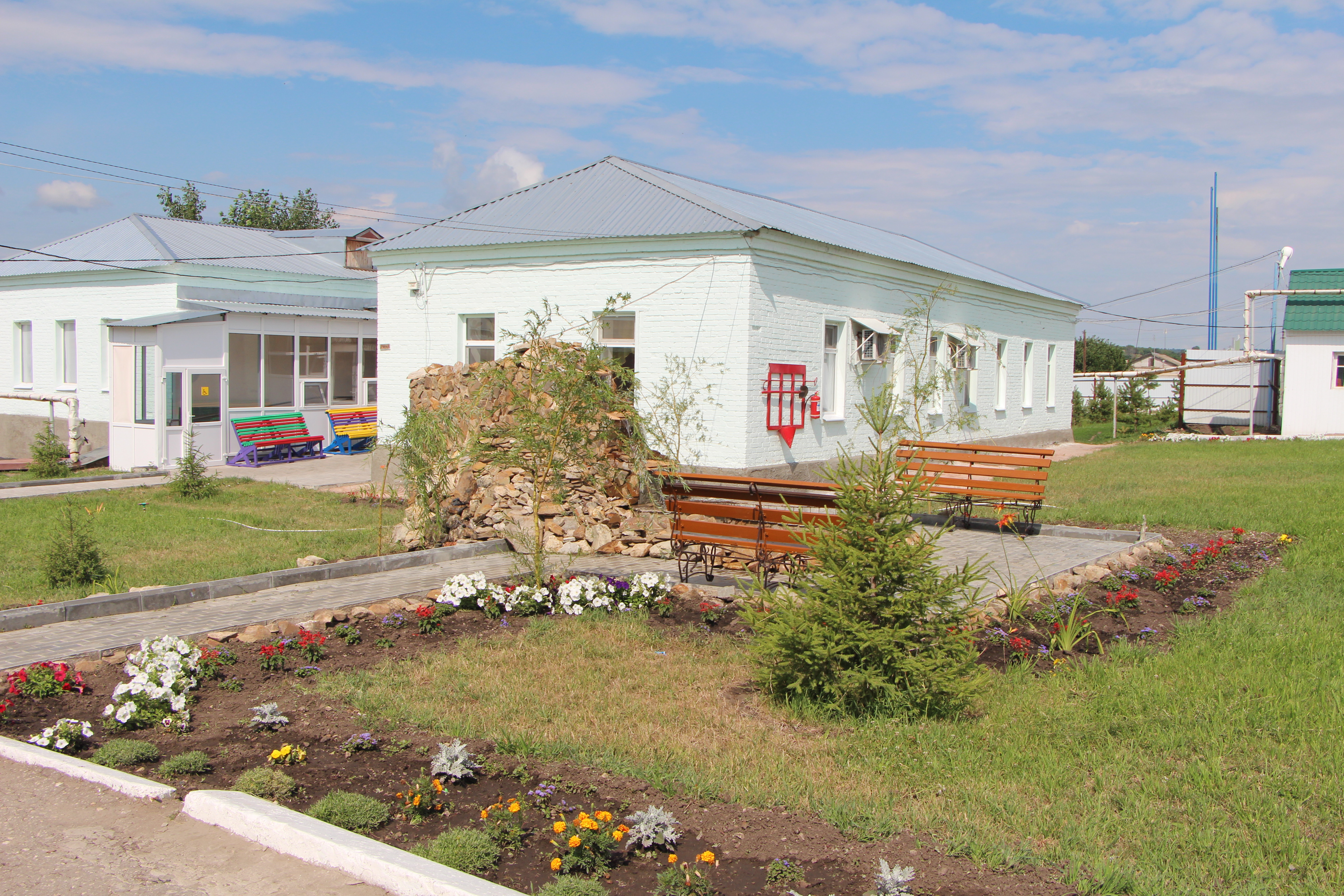 Для удобства и безопасности пациентов установлены пандусы, современные электрические подъемники и создана централизованная система вызова персонала. Двор интерната также заиграл новыми красками, благодаря высаженным клумбам и цветочным композициям.