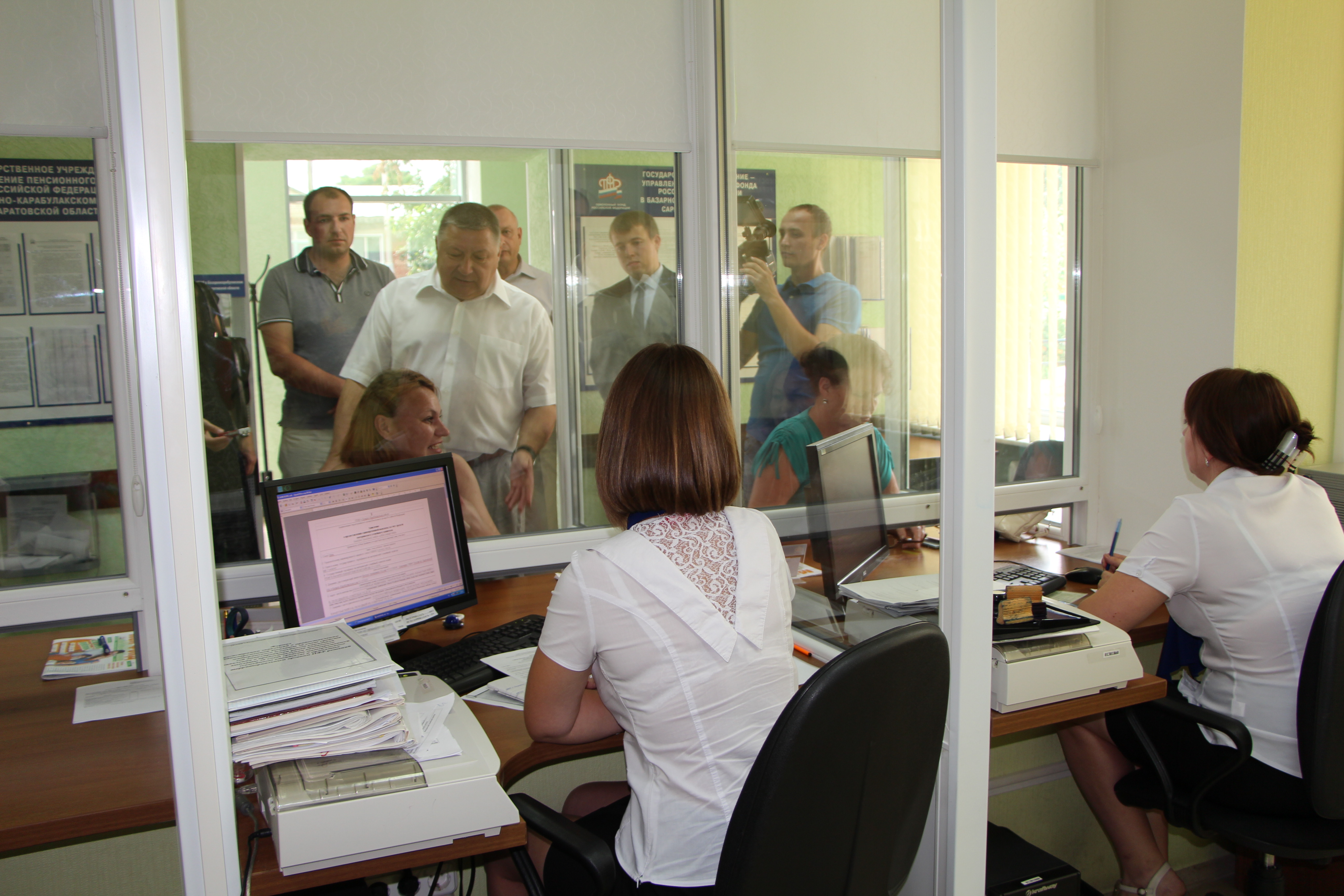 Завершающим пунктом поездки стало Управление Пенсионного фонда в Базарно-Карабулакском районе. Клиентами учреждения являются не только пенсионеры, но и молодые мамочки, которые оформляют СНИЛСы своим деткам и сертификаты на материнский (семейный) капитал, работодатели и предприниматели района, уплачивающие страховые взносы... Первое, на что обращают внимание посетители, переступая порог Управления ПФР, – это клиентская служба, которая совершенно справедливо считается лицом учреждения.