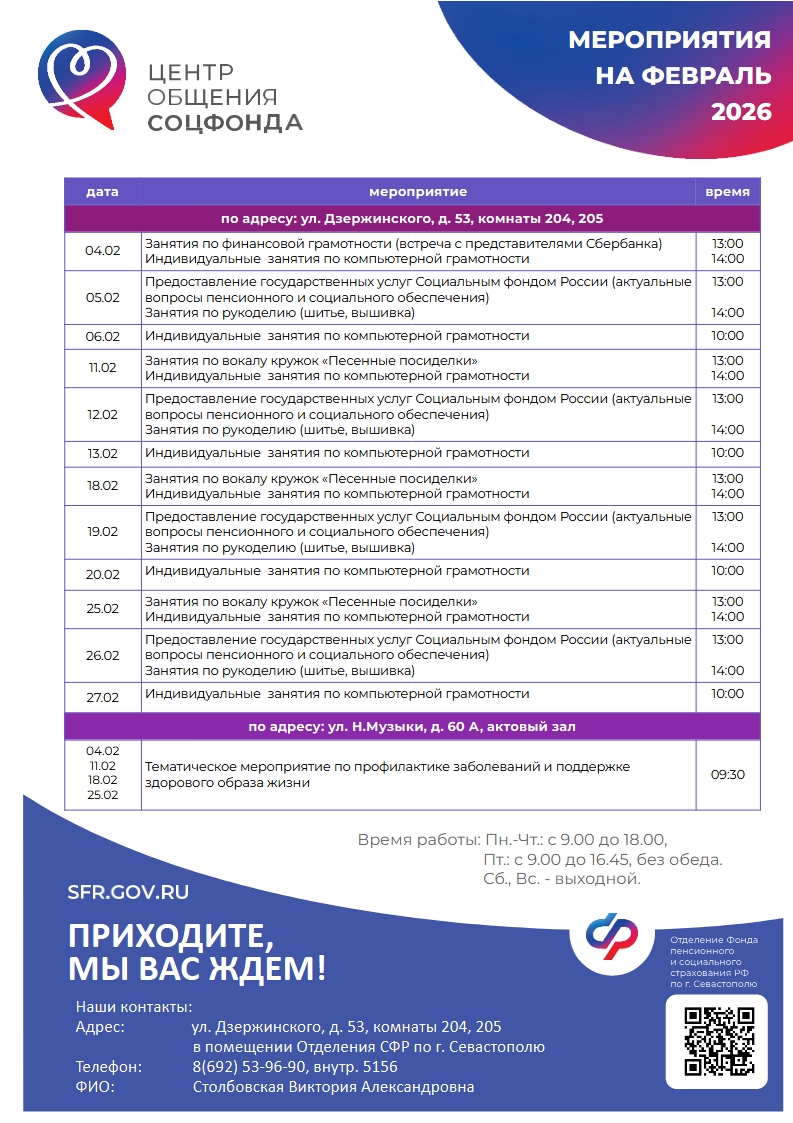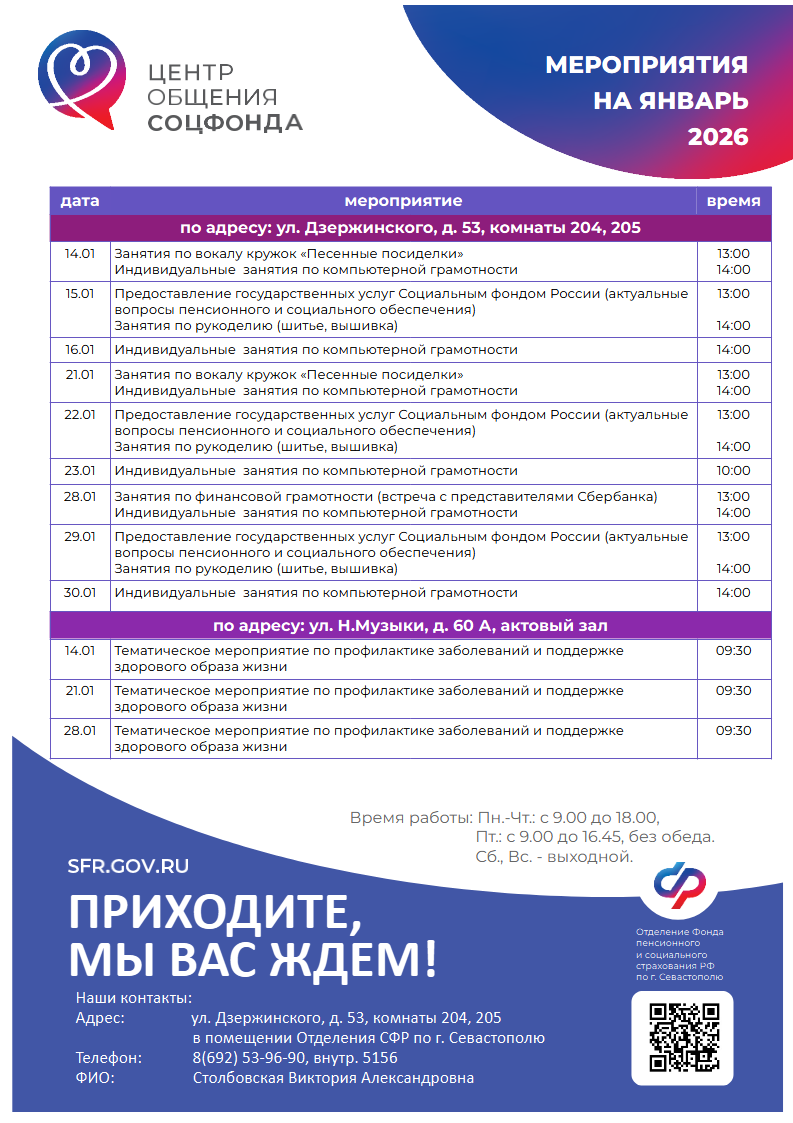 План мероприятий на базе Центра общения старшего поколения Отделения СФР по г.Севастополю