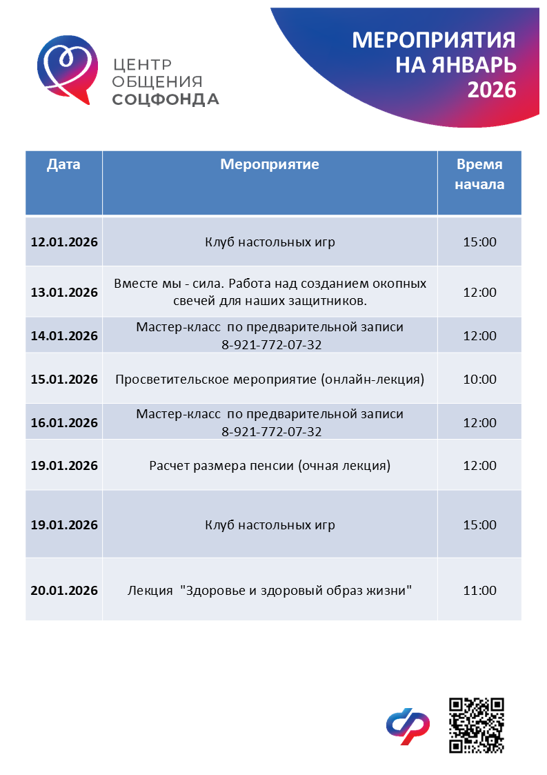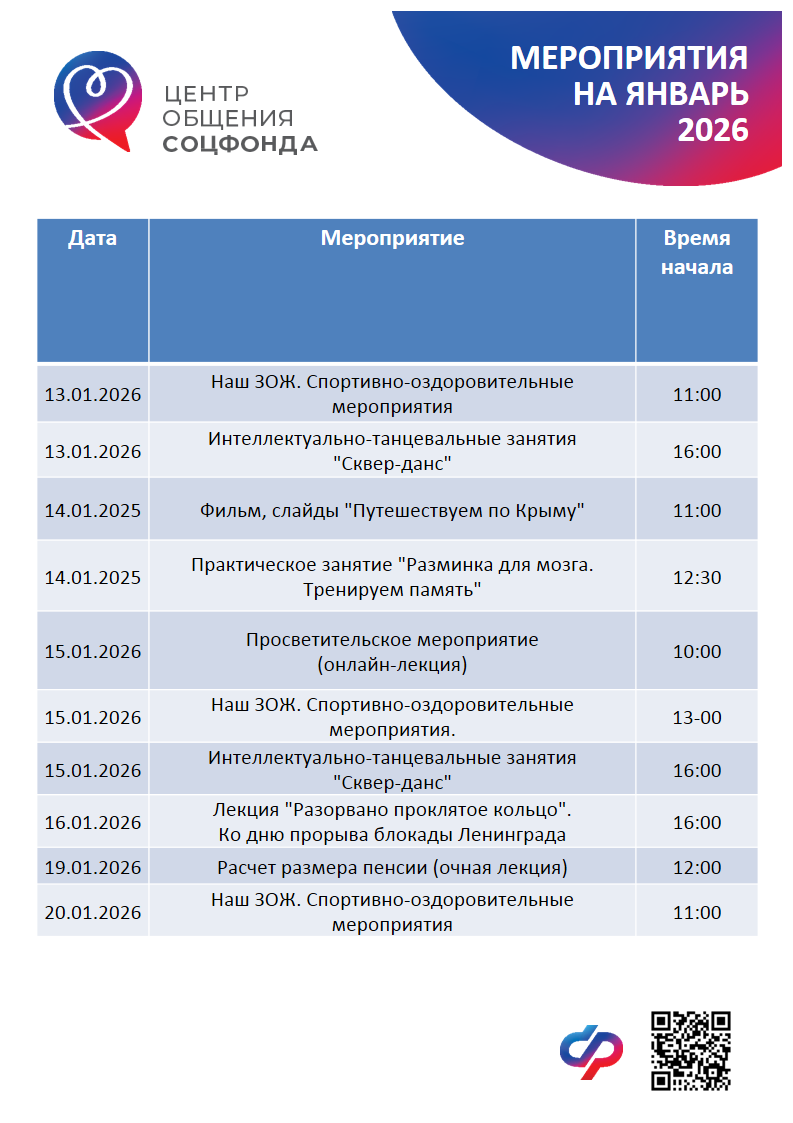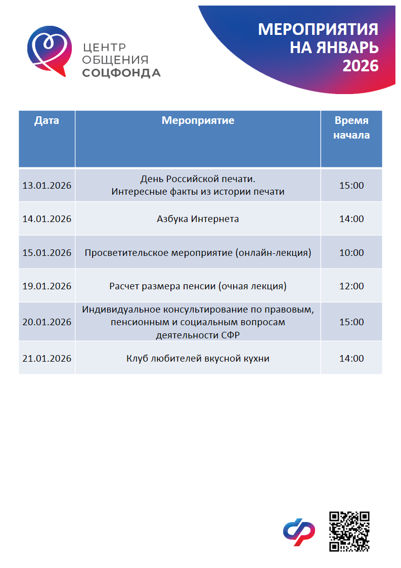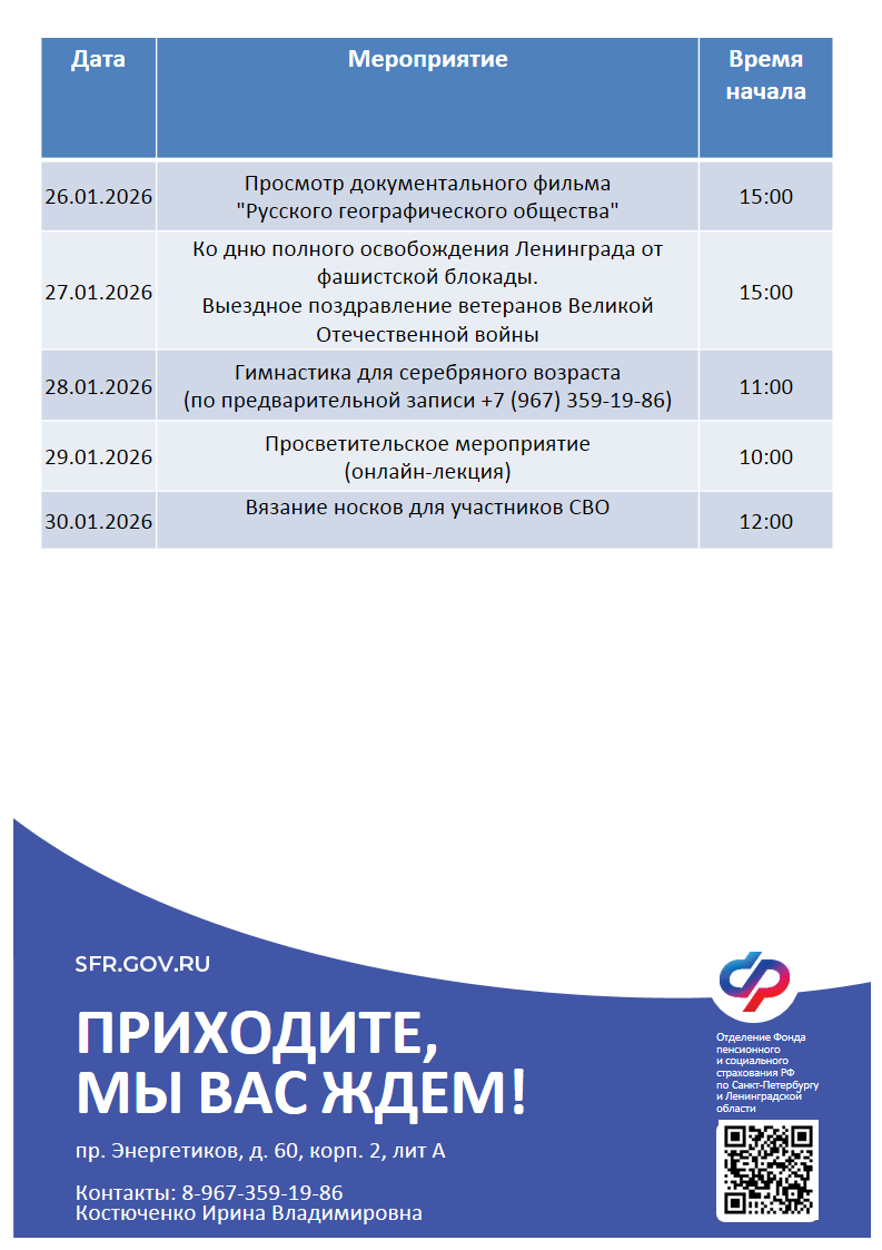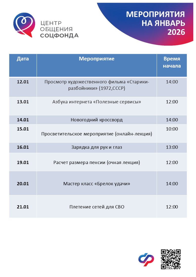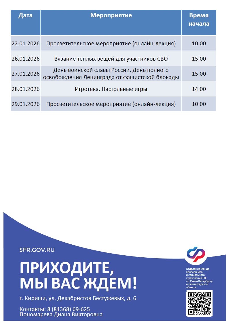 Отделение Социального фонда по Санкт-Петербургу и Ленинградской области подготовило для вас новую программу мероприятий на январь.