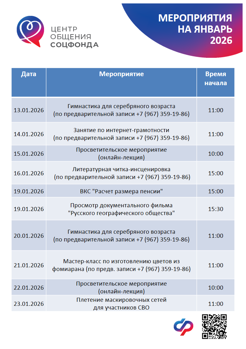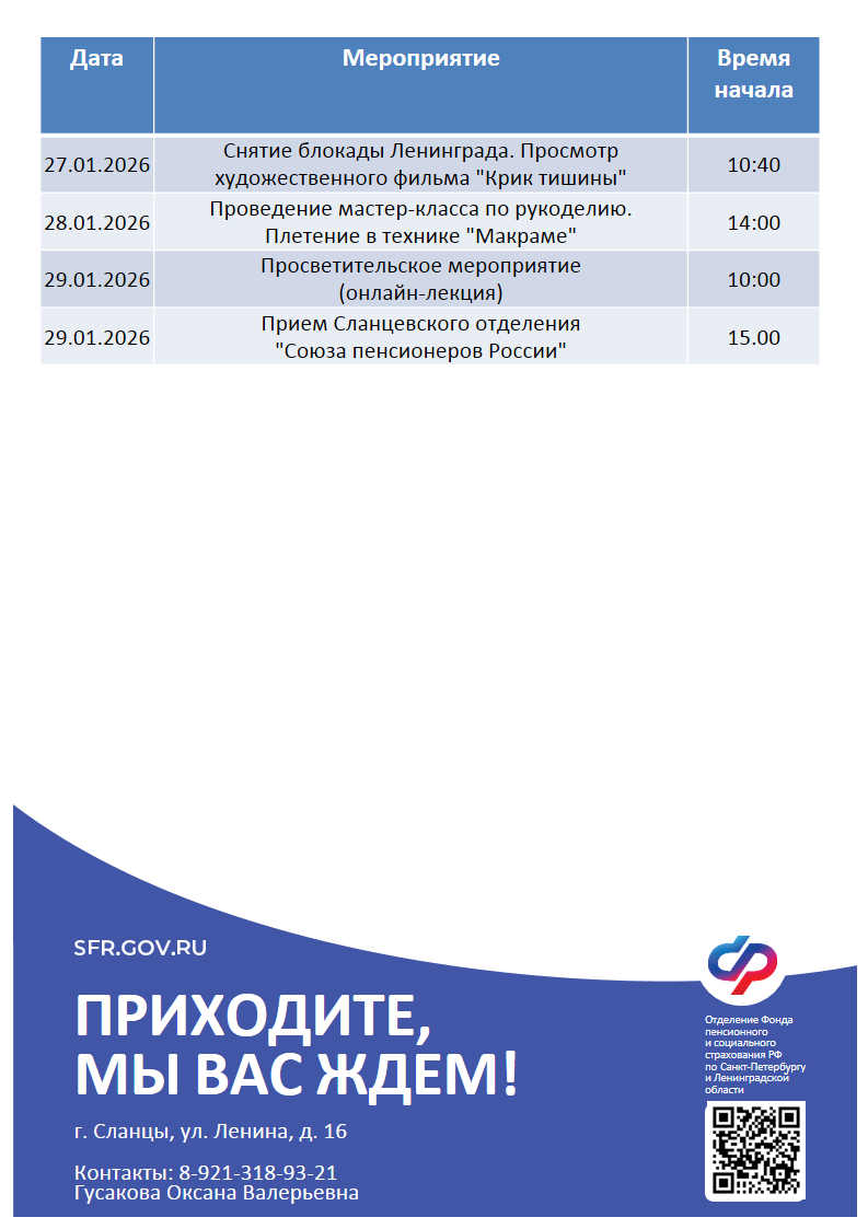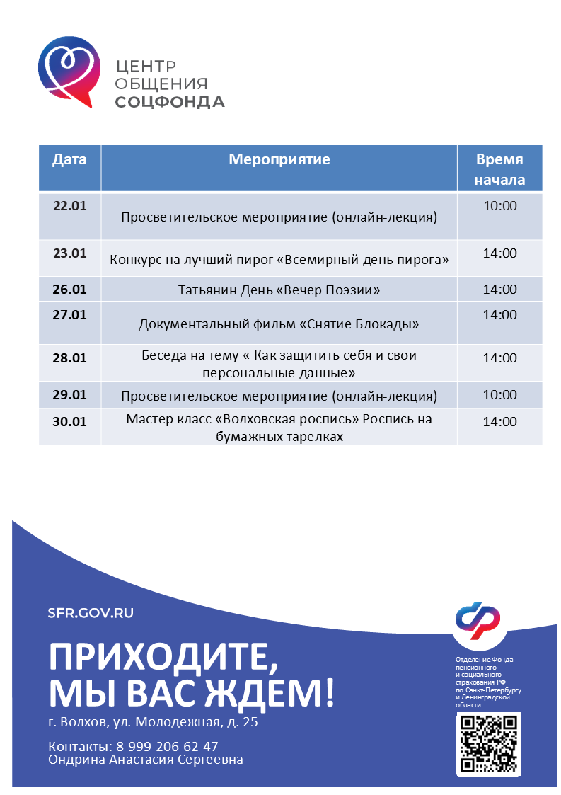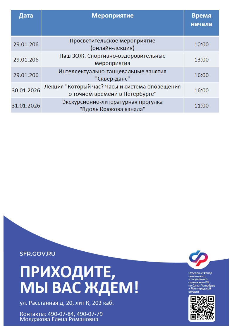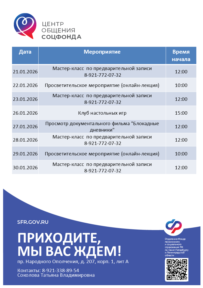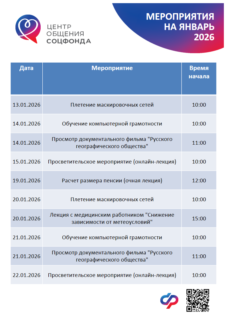 Отделение Социального фонда по Санкт-Петербургу и Ленинградской области подготовило для вас новую программу мероприятий на январь.