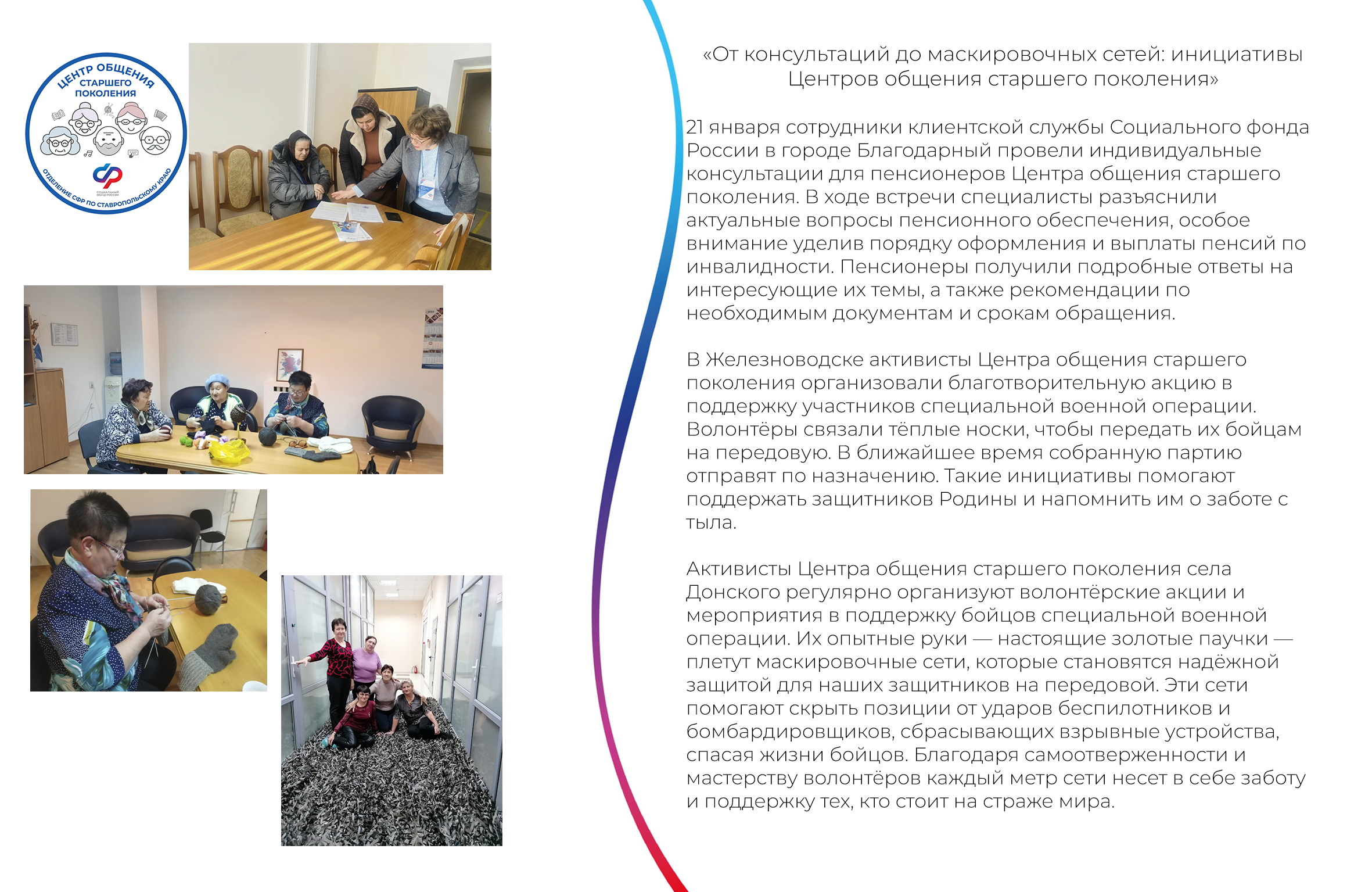 - «От консультаций до маскировочных сетей: инициативы Центров общения старшего поколения» (январь)