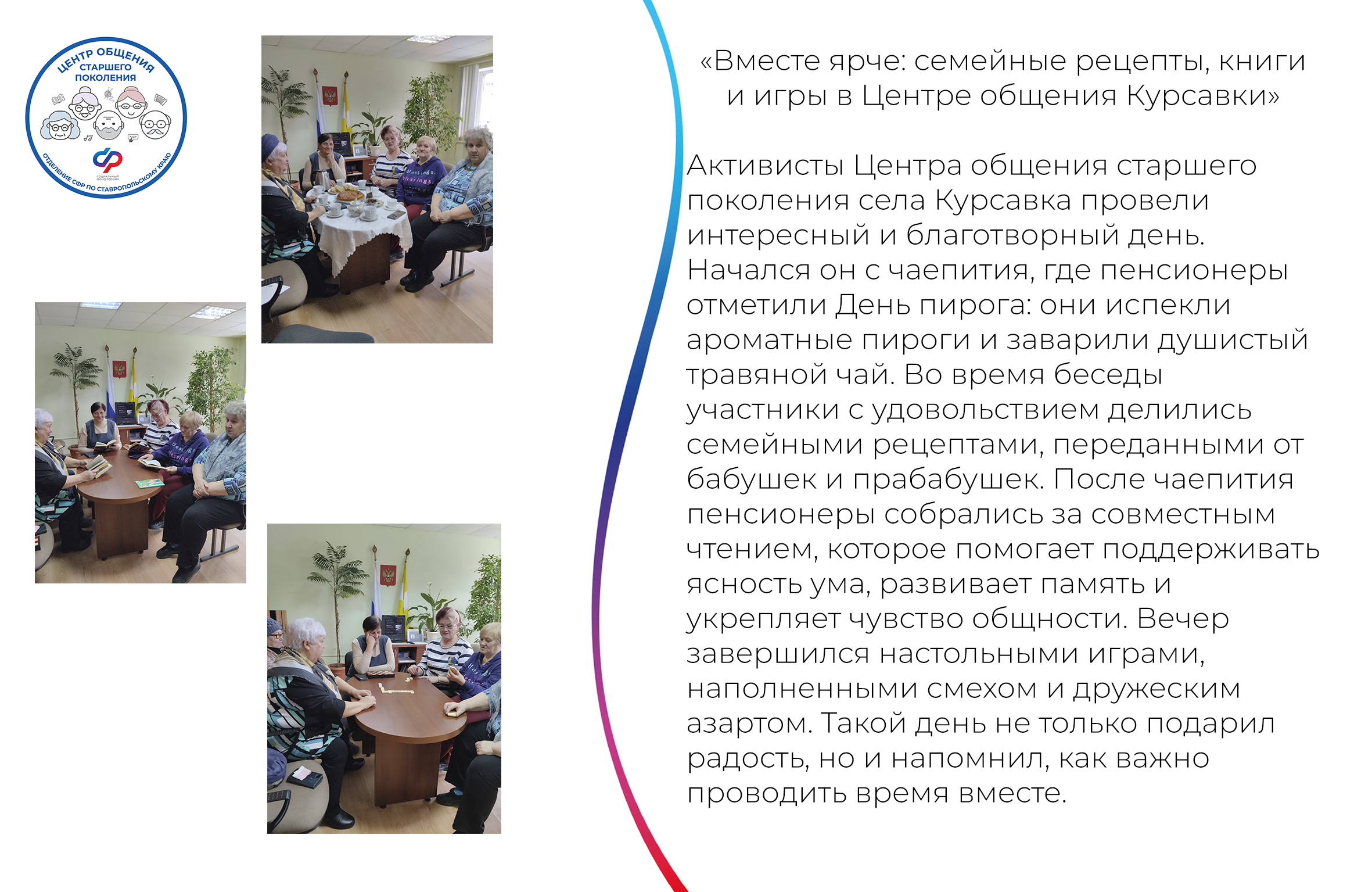 - «Вместе ярче: семейные рецепты, книги и игры в Центре общения Курсавки» (январь)