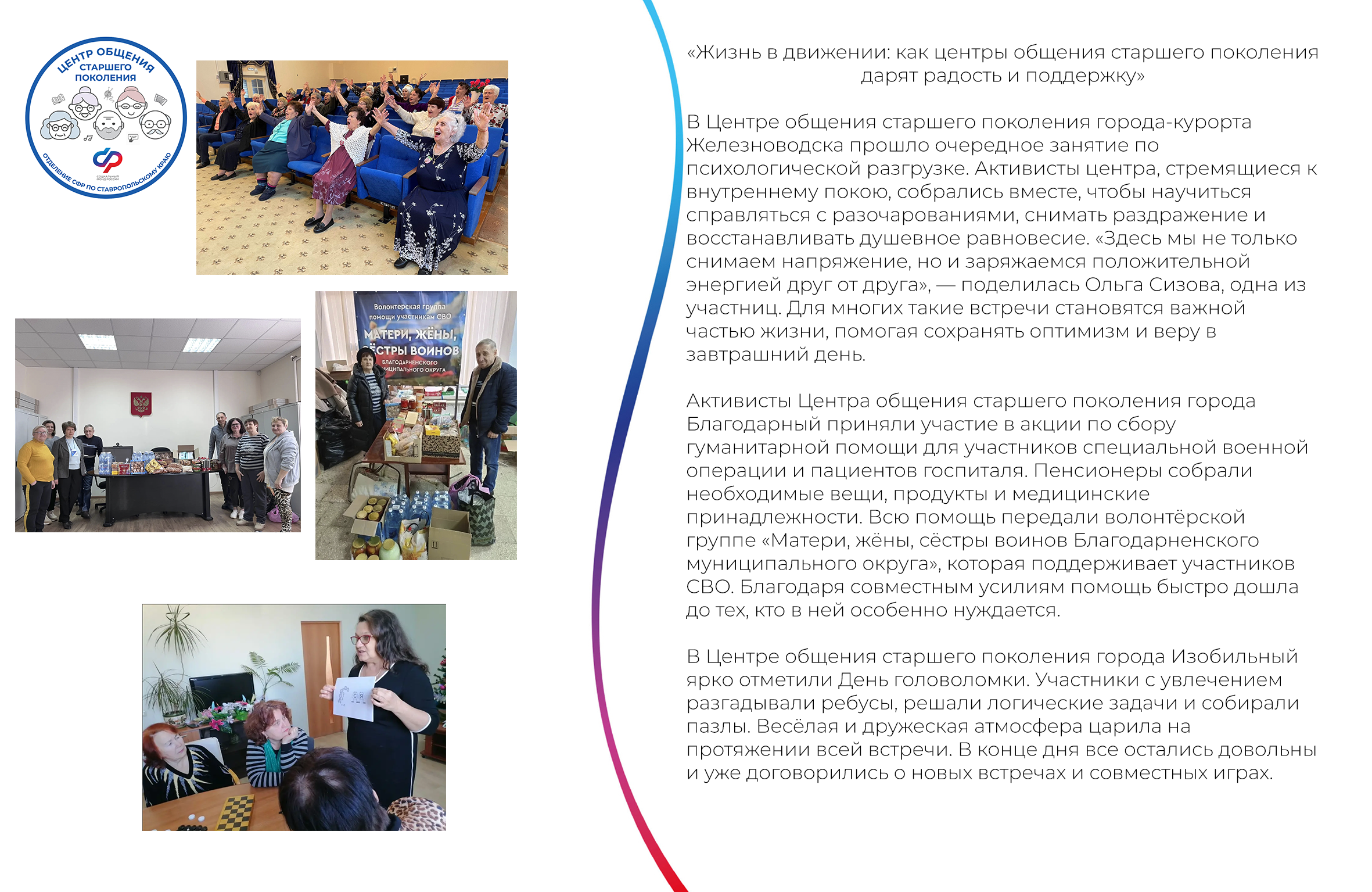 - «Жизнь в движении: как центры общения старшего поколения дарят радость и поддержку» (январь)