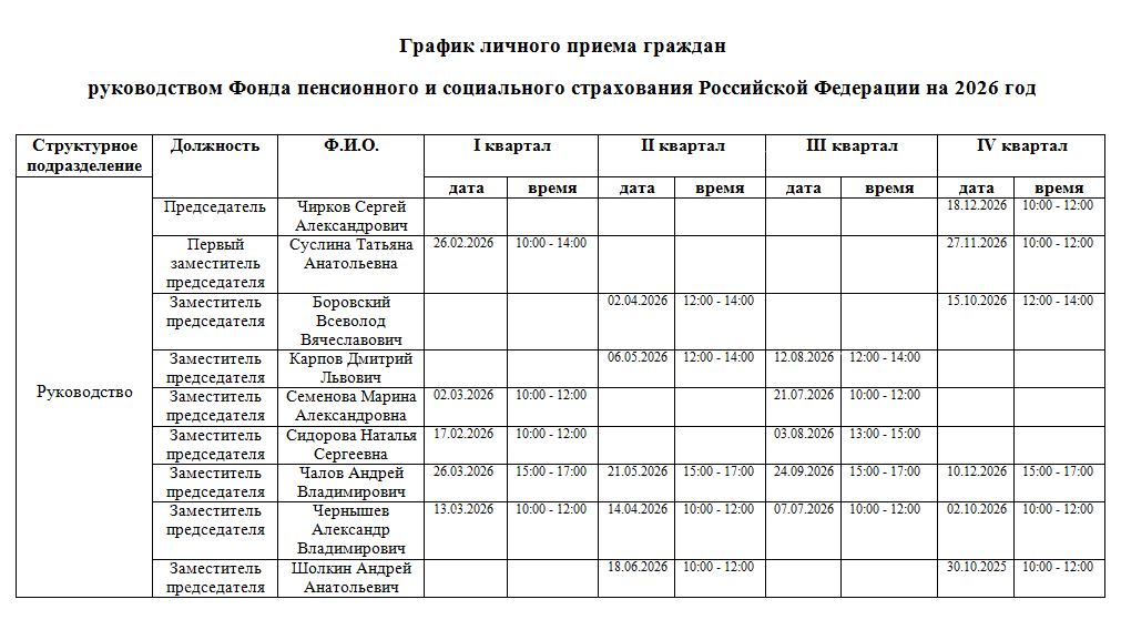 График личного приема граждан руководством Фонда пенсионного и социального страхования Российской Федерации