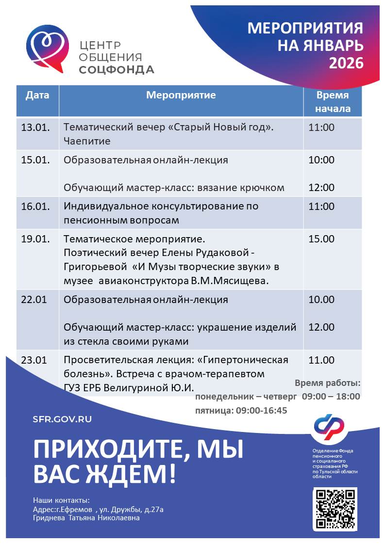 Центр общения старшего поколения "В ритме жизни" в г. Ефремове. Контакты и план мероприятий