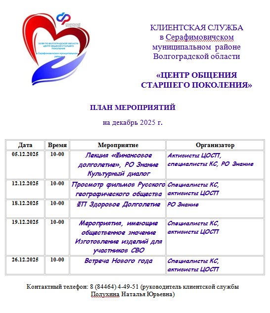 На базе клиентской службы в Серафимовичском районе ОСФР по Волгоградской области работает Центр общения старшего поколения (ЦОСП).