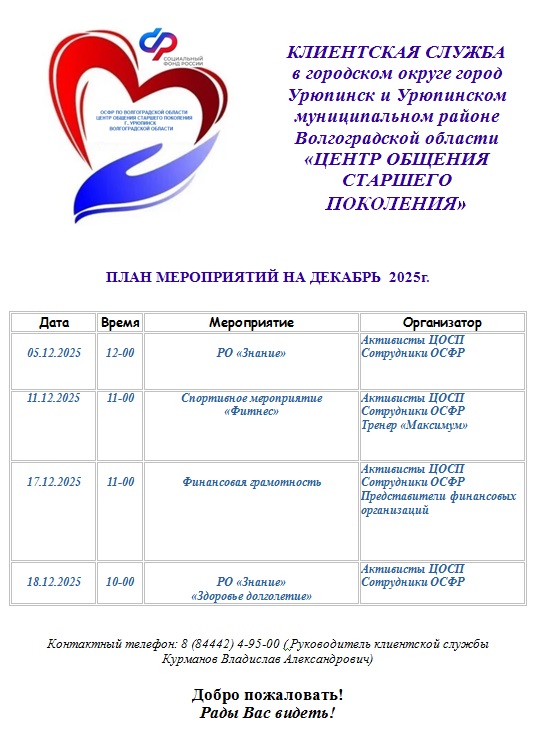 - 30 августа 2024 года на базе клиентской службы в городском округе - город Урюпинск и Урюпинском муниципальном районе ОСФР по Волгоградской области открыл свои двери для посетителей Центр общения старшего поколения