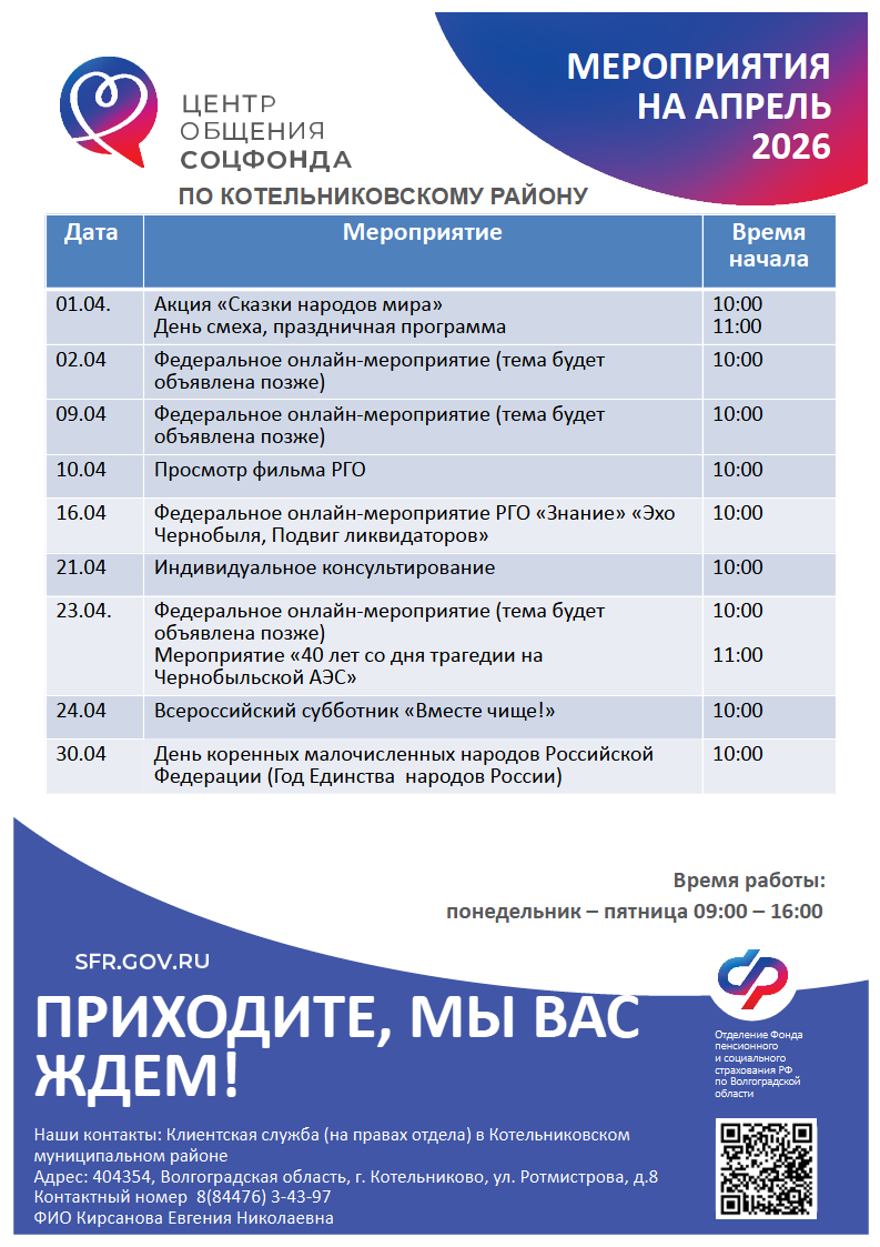 Мероприятия на ближайший месяц: апрель 2026 г.