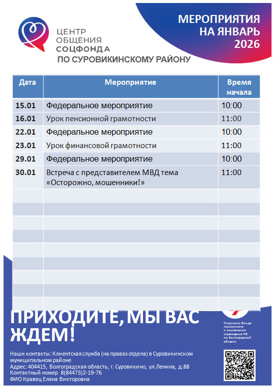 Мероприятия на ближайший месяц: январь 2026 г.
