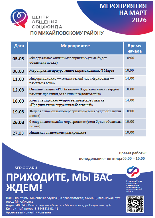 Мероприятия на ближайший месяц: март 2026 г.