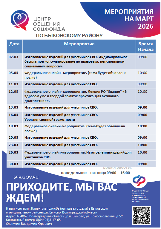 Мероприятия на ближайший месяц: март 2026 г.