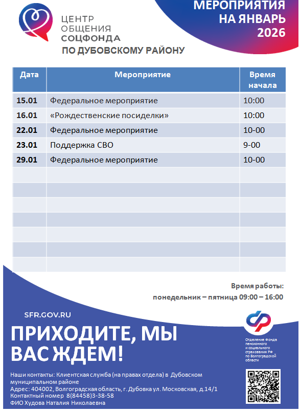 Мероприятия на ближайший месяц: январь 2026 г.