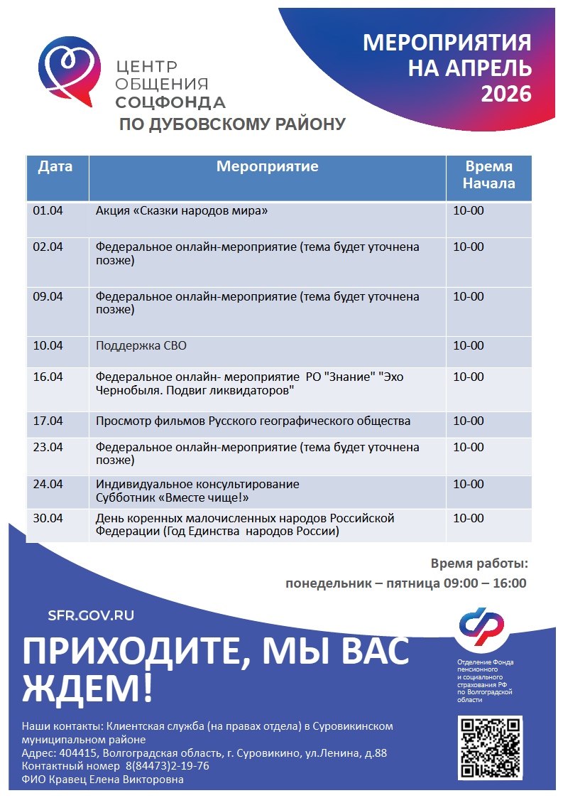 Мероприятия на ближайший месяц: апрель 2026 г.
