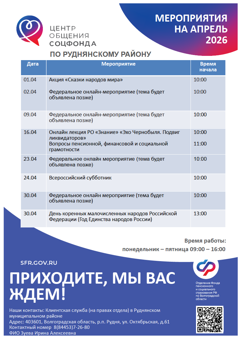 Мероприятия на ближайший месяц: апрель 2026 г.
