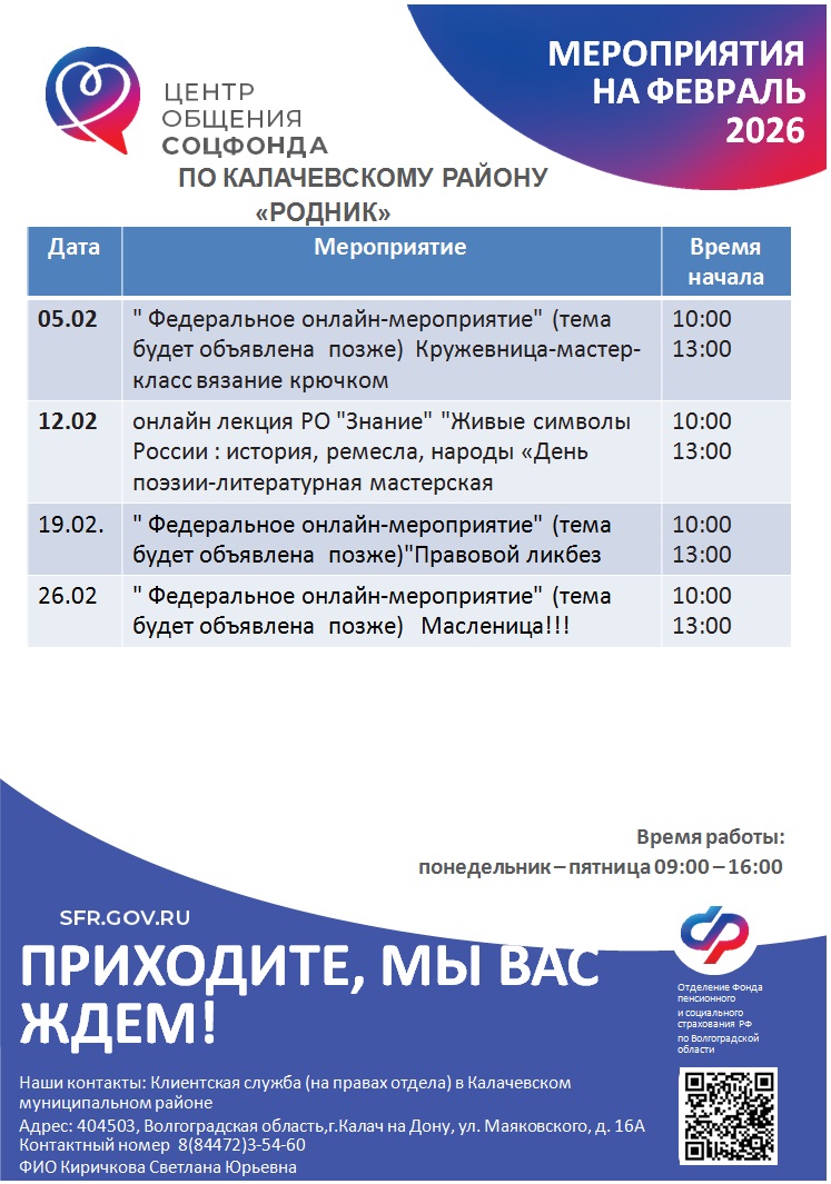 На базе клиентской службы в Калачевском районе ОСФР по Волгоградской области работает Центр общения старшего поколения (ЦОСП).