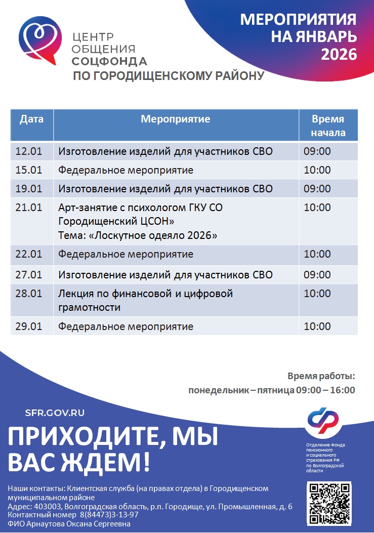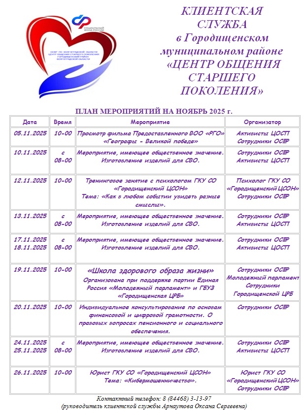 На базе клиентской службы в Городищенском районе ОСФР по Волгоградской области работает Центр общения старшего поколения (ЦОСП).
