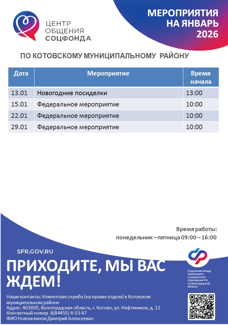 На базе клиентской службы в Котовском районе ОСФР по Волгоградской области работает Центр общения старшего поколения (ЦОСП).