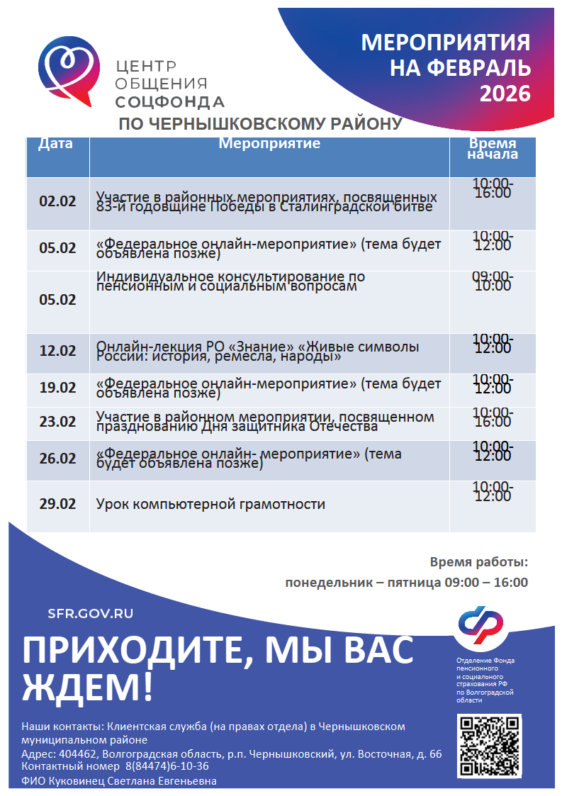 Мероприятия на ближайший месяц: февраль 2026 г.