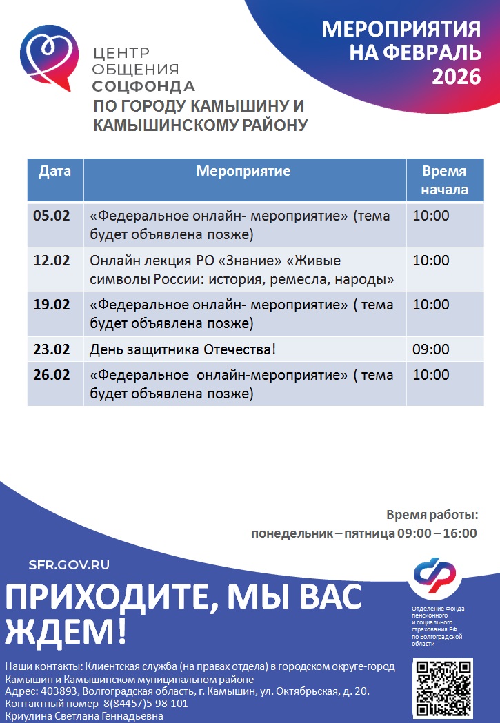 Мероприятия на ближайший месяц: февраль 2026 г.