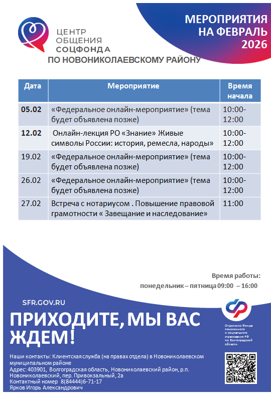 Мероприятия на ближайший месяц: февраль 2026 г.