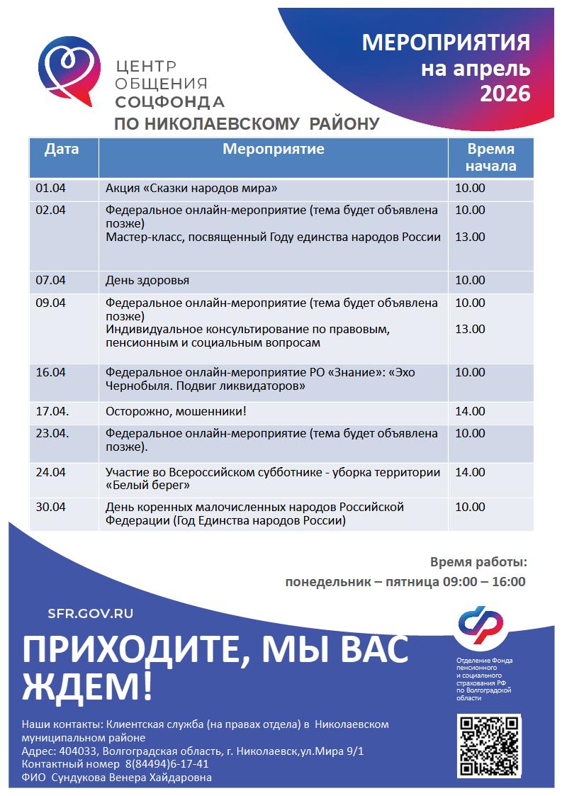 Мероприятия на ближайший месяц: апрель 2026 г.