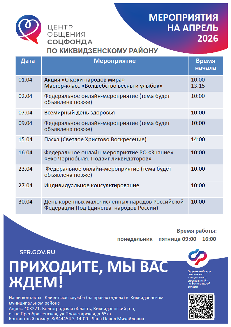 Мероприятия на ближайший месяц: апрель 2026