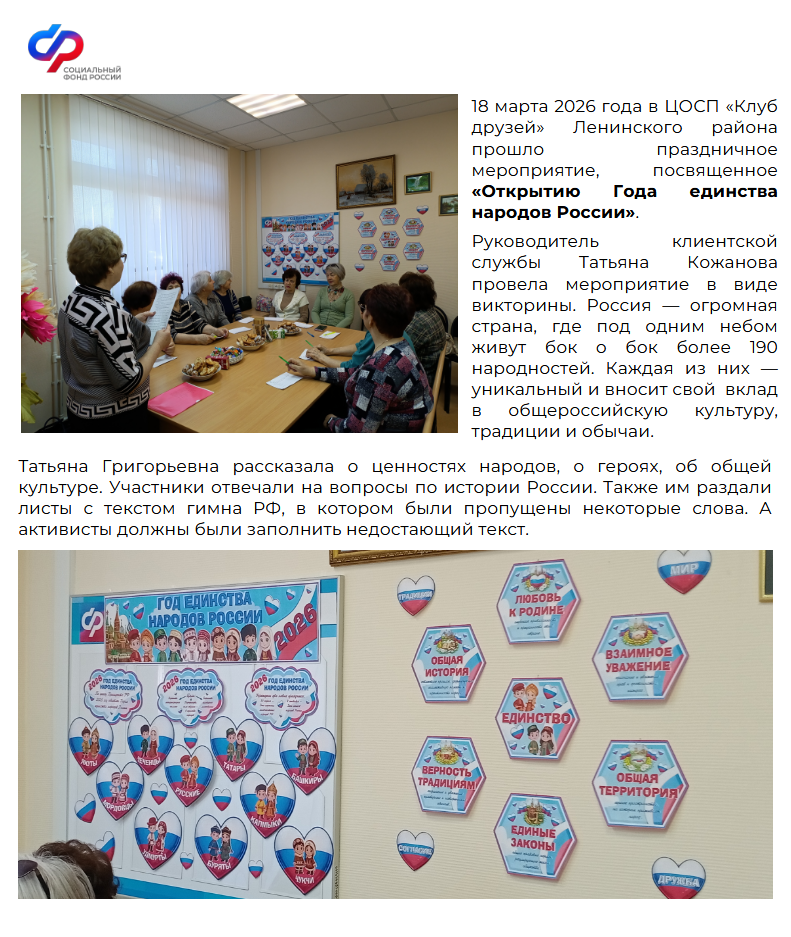 На базе клиентской службы в Ленинском районе ОСФР по Волгоградской области работает Центр общения старшего поколения (ЦОСП).