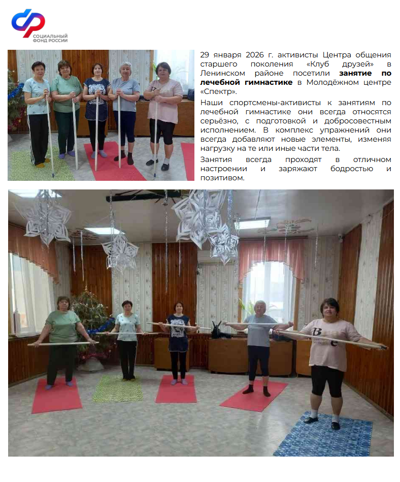 - Лечебной гимнастикой регулярно занимаются активисты ЦОСП