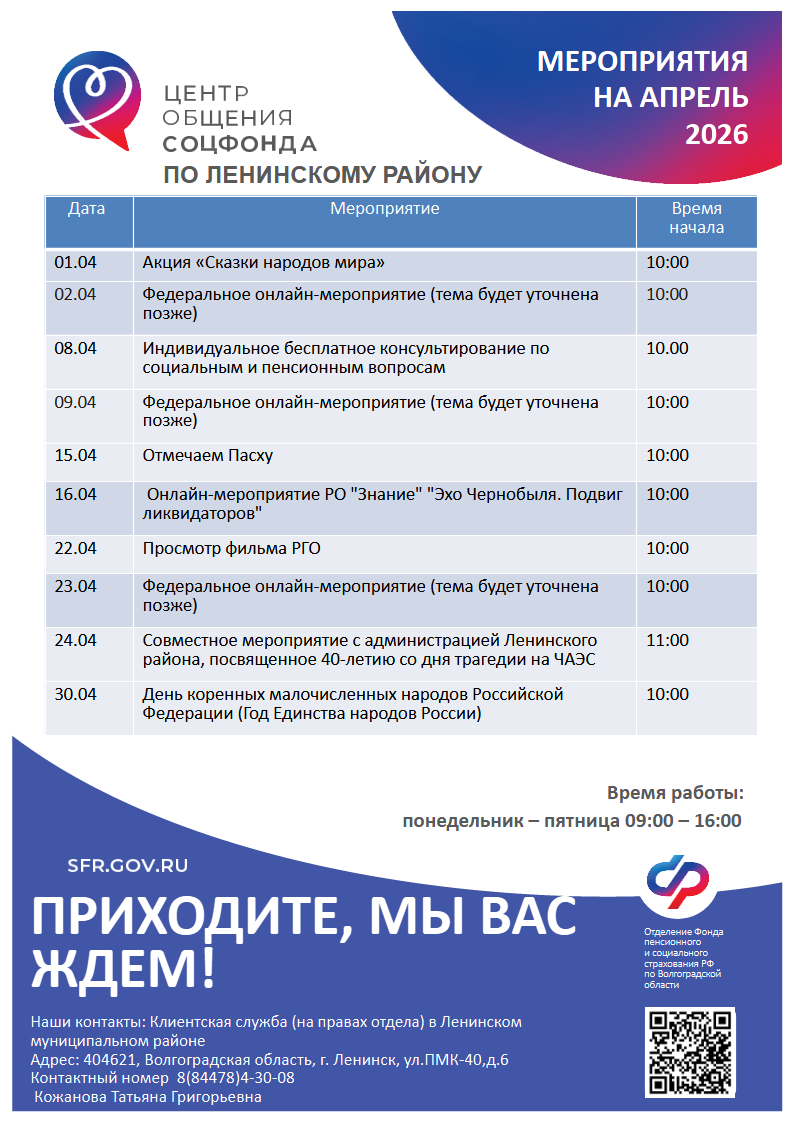 Мероприятия на ближайший месяц: апрель 2026 г.