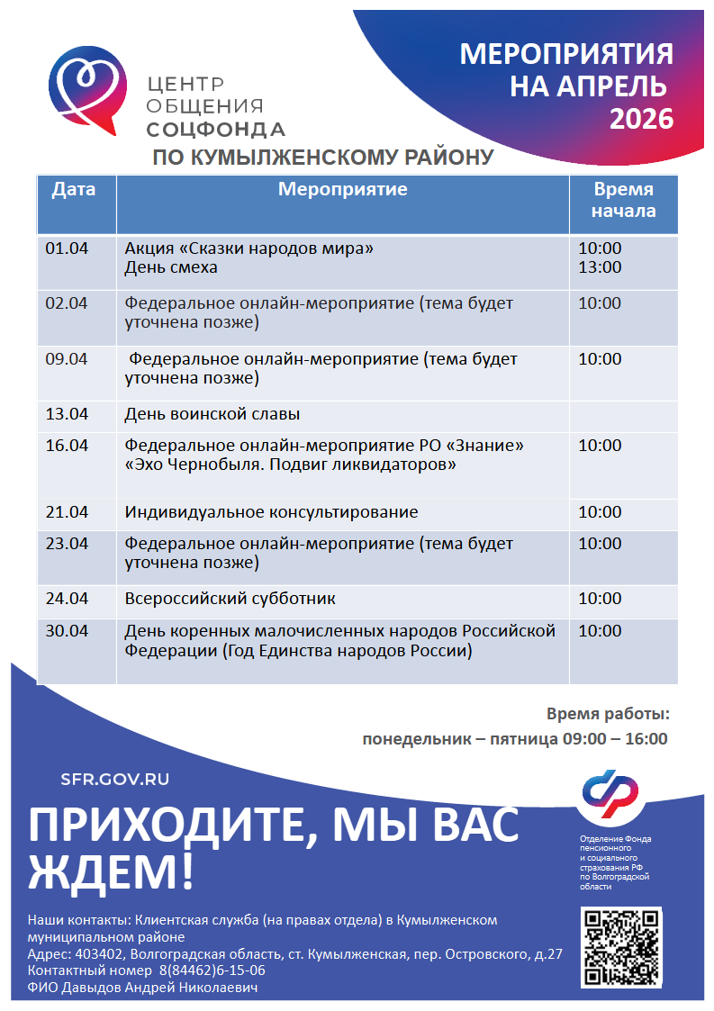 Мероприятия на ближайший месяц: апрель 2026 г.