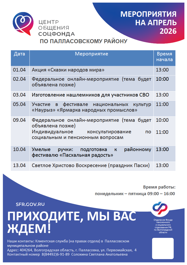 На базе клиентской службы в Палласовском районе ОСФР по Волгоградской области работает Центр общения старшего поколения (ЦОСП).