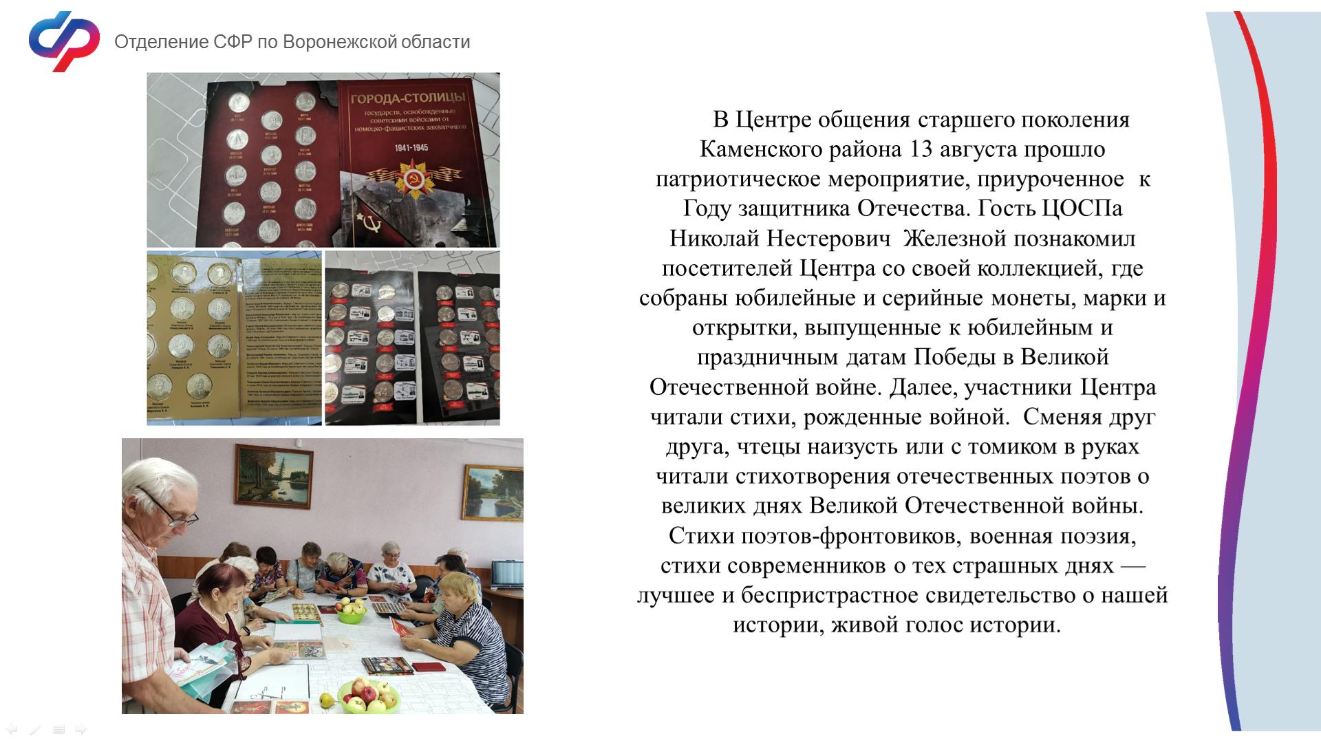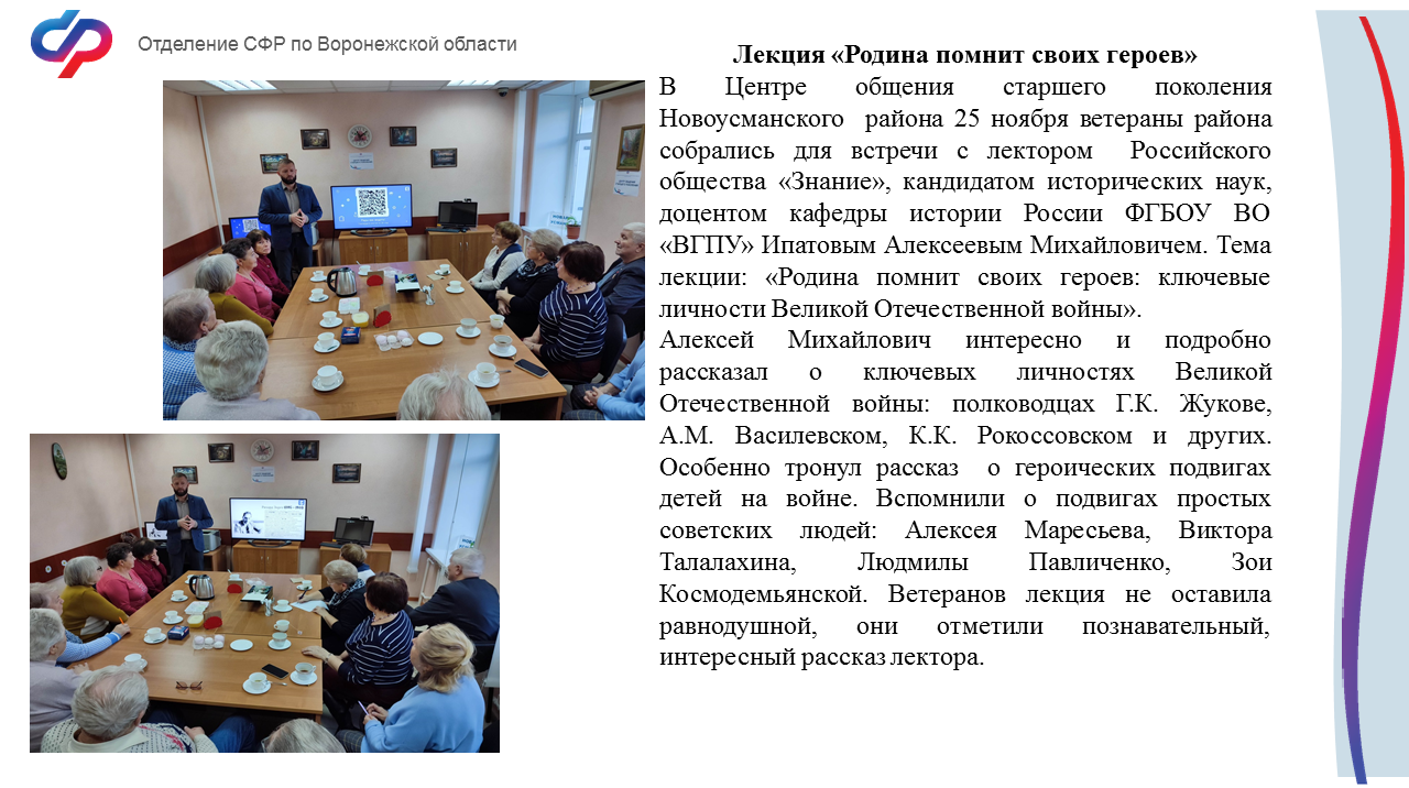 Лекция "Родина помнит своих героев" прошла в ЦОСПе Новоусманского района