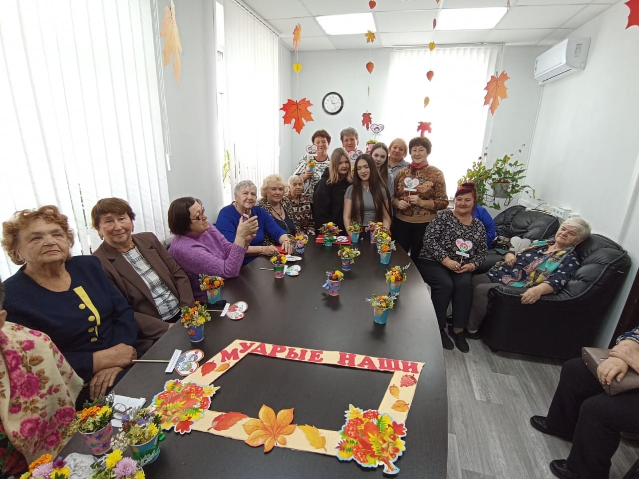 В Центр общения старшего поколения "В кругу друзей" поздравить с праздником пришли студентки из Великосельского аграрного колледжа. Они сказали слова признательности людям старшего поколения, подарили икебаны из живых цветов. А поскольку наш центр посещают люди активные и творческие, то концерт мы подготовили собственными силами созданного нашими активистами коллектива "Творческий союз". Звучали стихи, песни, сценки- все на высшем уровне! Спасибо артистам, гостям! Дебют состоялся!