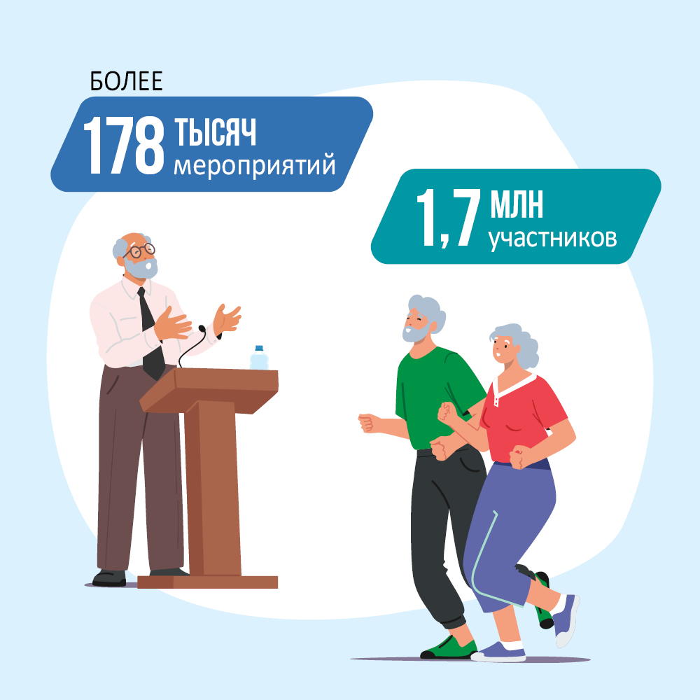 В 88 регионах страны работают Центры общения старшего поколения, в которых проведено более 178 тыс. мероприятий, в которых приняли участие 1,7 млн. человек.